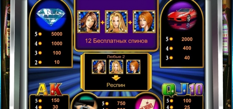 Знак разброса представлен в виде красивых девушек, которые при появлении в трех и более местах активируют бесплатные вращения.