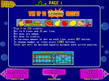 Оплачиваемые комбинации составляются из однотипных изображений в пределах активных линий. Основными знаками на барабанах считаются фрукты разных сортов.