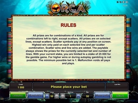 Автомат Orca полностью русифицирован. Поэтому сложностей с управлением процессом игры быть не должно.